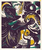 Franz Marc (1880-1916) was een Duitse schilder en medeoprichter van het expressionistische Blaue Reiter. Hij staat bekend om zijn kleurrijke schilderijen van dieren, vooral paarden, die hij in abstracte vorm afbeeldde. Marc ontwikkelde een eigen beeldtaal en gebruikte sterke, felle kleuren om een emotioneel effect te bereiken.