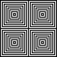 Centraal gerangschikte vierkante strepen, matrix 02x02, aantal nesten N=8, middelpunt wit