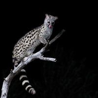In Extremadura Spanje was ik in de gelegenheid bij een Spaanse fotograaf in de nachtelijk uren de Genetkat te fotograferen. Een geweldige ervaring met veel geduld en nauwkeurige uitlijning van belichting is het uiteindelijk gelukt.