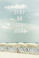 Een prachtig strandtafereel nodigt u uit om te ontspannen. Puur vakantiegevoel! Een paar woorden en zo veel waarheid! Een ontwerp dat past bij het motto van het leven. ENJOY THE LITTLE THINGS. GENIET VAN DE KLEINE DINGEN.