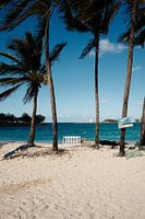 Een perfecte plek voor een pauze - een bankje op het strand van de Bahamas.
