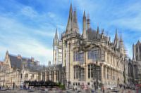 Meervoudige belichting van de oude binnenstad van Gent, Oost-Vlaanderen. Hier zijn twee ICM's, ofwel intentional camera movement, in de camera samengevoegd, wat voor een abstract en schilderachtig geheel zorgt.