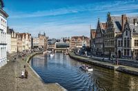 Zicht op binnenstad van Gent met zijn grachten en zijn middeleeuwse gebouwen.