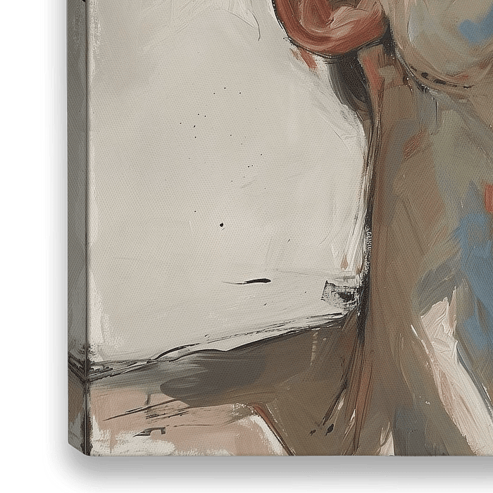 Het gebruik van expressieve penseelstreken en een levendig kleurenpalet op de huid van het model brengt een dynamische en bijna tastbare textuur tot leven. De kleuren lijken te dansen op de contouren van het…