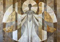 Details: engel, vrouw, geometrisch, goud, abstract, modern, kunst, elegant, serene, mystiek