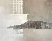 Geometric Whispers - Dit abstracte schilderij kenmerkt zich door een geometrisch patroon en een gelaagde textuurrand in neutrale tinten die een subtiele maar dynamische dialoog voeren.