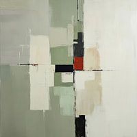 Geometrie | Red Accent Harmony - Dit abstracte schilderij kenmerkt zich door overlappende geometrische vormen en een rustig kleurenpalet met een opvallende rode accent.