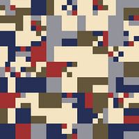 Dit willekeurige geometrische patroon bestaat uit vierkanten en rechthoeken in een beperkt winterkleurenpalet van amandelbeige, donkerblauw, olijfgroen, natte sneeuwgrijs en sambarrood. De schijnbaar willekeurige verdeling van vormen en kleuren wordt ondersteund en beperkt door een inherente logica, waarbij nieuwe veelhoeken ontstaan wanneer dezelfde kleuren botsen.