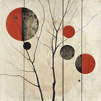 Dit indrukwekkende kunstwerk combineert elegante geometrische vormen met een contrasterend kleurenpalet van rood, zwart en beige. De delicate lijnen en cirkels, die doen denken aan natuurlijke takken, creëren een harmonieuze maar dynamische compositie. Ideaal voor moderne woonruimtes en kantoren die een stijlvolle en creatieve sfeer…