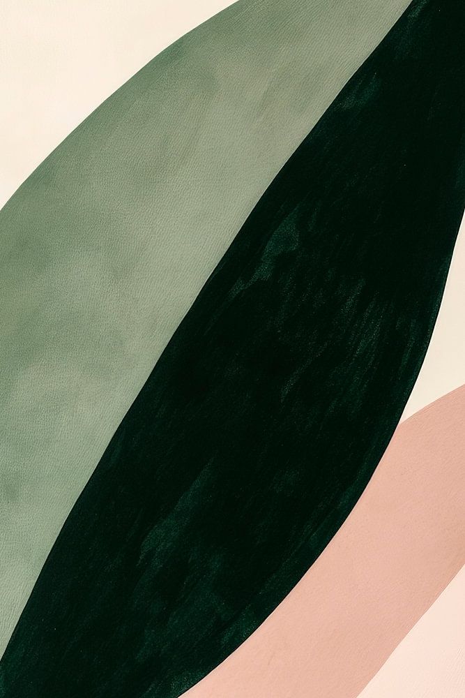 Zachte vormen in harmonieuze groentinten en warme aardetinten creëren een uitnodigende sfeer. De gestileerde bladeren hebben een modern en rustgevend effect, perfect voor een woon- of slaapkamer, waar ze een ontspannen elegantie uitstralen en de band met de natuur benadrukken. Ideaal om rust en stijl te combineren.