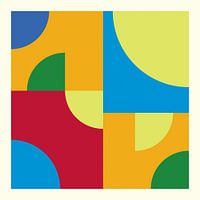 Dit Geometrische werk voegt kleur en vrolijkheid toe aan jouw interieur! Met de vierkanten, halve cirkels een gezellig geheel. Fleur ook jouw thuis op met dit blije kleurrijke werk!