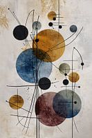 Koop dit abstracte kunstwerk Geometrisch Abstract Schilderij - Blauw Oker met cirkels van Joriali Abstract op canvas, aluminium dibond, (ingelijste) fotoprint, behang en ArtFrame, op maat geprint in Fine-Art kwaliteit.