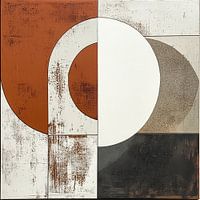 Geometrisch Beige - Dit moderne kunst schilderij toont een compositie van geometrische vormen in beige, wit en roestkleur, opgedeeld in verschillende panelen die samen een ontspannende en kalme uitstraling geven.