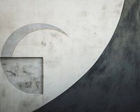 Geometrisch Evenwicht | Abstract Monochroom - Dit abstracte werk speelt met geometrische vormen en zachte overgangen tussen lichte en donkere tinten. Met een grote cirkel die deels wordt overlapt door een rechthoek en een donker kwadrant, ontstaat er een subtiel spanningsveld. De textuur geear alleen een rustieke charme, versterkt door…