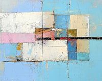 Geometrisch Pastel - Dit abstracte schilderij toont een serene compositie van geometrische vlakken in pastelblauw, wit en subtiele accenten van roze en geel, die samen een rustgevende en balancerende uitstraling geven.