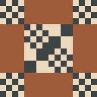 Een abstractie van geometrische ruitjesmotieven in de kleuren terracotta, beige en zwart. Moderne kunst in de trend van de tijd.