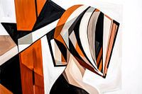 Dit unieke schilderij biedt een intrigerende kijk op een vervormd hoofd, gemaakt uit geometrische vormen en gedurfde kleuren. Het ontwerp speelt met perspectieven en creëert een visueel effect van beweging en diepte. Het gebruik van oranje, zwart, wit en grijs zorgt voor een dynamisch contrast dat de aandacht trekt. Perfect voor wie…
