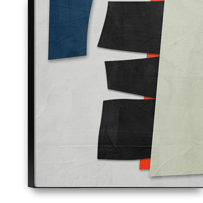 Koop dit abstracte kunstwerk Geometrisch abstracte kunst, blauwe, oranje en zwarte tinten van Online Arts op canvas, aluminium dibond, (ingelijste) fotoprint, behang en ArtFrame, op maat geprint in Fine-Art kwaliteit.