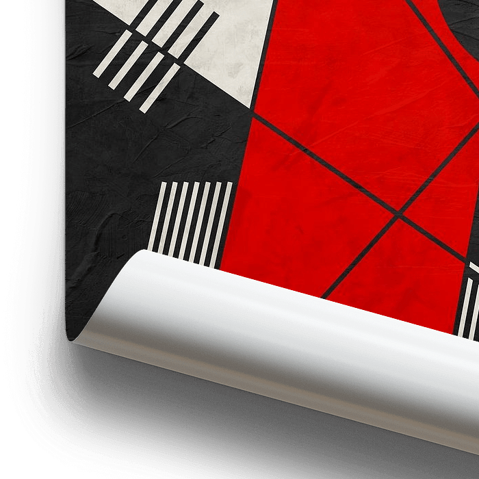 Koop dit abstracte kunstwerk Geometrisch abstracte kunst, rode, beige en zwarte tinten van Online Arts op canvas, aluminium dibond, (ingelijste) fotoprint, behang en ArtFrame, op maat geprint in Fine-Art kwaliteit.