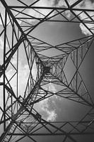 Dit geometrische geraamte van een zendmast boven op de hoogte berg in Griekenland op het eiland Corfu. De ijzeren balken zorgen voor een spinnenweb op de zendmast recht overeind te houden.