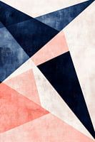 Geometrische vormen in diepblauwe en zachtroze tinten dansen harmonieus op een lichtgekleurde achtergrond. Deze dynamische compositie straalt een moderne flair uit en inspireert tot creativiteit. Ideaal voor een stijlvol kantoor of een levendige woonkamer, het zal de aandacht trekken en een vleugje hedendaags design toevoegen aan elke kamer.