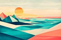 Geometrisch landschap met zonsondergang van Poster Art Shop