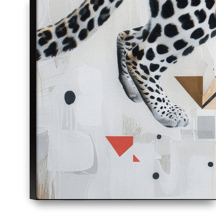 Dit fascinerende kunstwerk combineert de majestueuze schoonheid van een luipaard met abstracte geometrische vormen. De harmonieuze combinatie van zwart en wit en gouden accenten geeft het beeld een elegante maar dynamische uitstraling. Ideaal voor liefhebbers van wilde dieren en moderne kunst die op zoek zijn naar een opvallend…