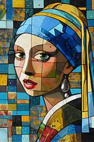 Herontdek Vermeers klassieker door de veelzijdige lens van het kubisme. In dit kunstwerk wordt het beroemde Meisje met de parel omgezet in een kubistische wereld waarin elke geometrische vorm een hoofdstuk van het verhaal vertelt. De iconische hoofdtooi en de glinsterende parel krijgen een nieuwe dimensie door de gedurfde, in elkaar grijpende oppervlakken. De scherpe lijnen en opvallende kleuren geven het schilderij een unieke visuele diepte, waardoor het een fascinerend gespreksonderwerp wordt voor elke moderne galerie of collectie.