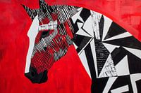 Een fascinerend samenspel van gedurfd rood en contrasterende zwart-wit tinten die de gratie van een paard op een buitengewone manier vastlegt. De geometrische patronen voegen dynamiek en moderniteit toe aan de afbeelding, terwijl het stralende kleurenpalet energie uitstraalt. Perfect voor een woonkamer om gesprekken te stimuleren en een opvallend element te creëren.