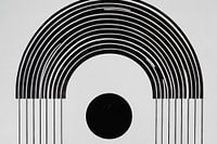 Er ontvouwt zich een harmonieus samenspel van lijnen en vormen, waarbij de zwarte boog elegant boven de centrale cirkel zweeft. De precieze bogen creëren een voelbare dynamiek en leiden het oog sierlijk van het midden naar de bovenrand, terwijl het contrast tussen zwart en wit een minimalistische esthetiek belichaamt. Een indrukwekkend…