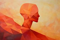 Een harmonieuze fusie van warme oranje en gele tinten creëert een uitnodigende sfeer die de kijker aanzet tot nadenken. De geometrische vormen vormen de contouren van een menselijk silhouet en brengen een gevoel van rust en inspiratie over. Perfect voor in de woonkamer om gesprekken aan te moedigen en creatieve gedachten te stimuleren.