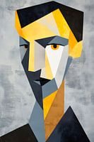Een krachtig portret dat boeit met geometrische vormen en een koel kleurenpalet. De opvallende gele accenten geven het gezicht een spookachtige aanwezigheid, terwijl de scherpe lijnen en contrasten spanning creëren. Dit modernistische kunstwerk vormt een uitstekend middelpunt in de woonkamer, waar het een gesprek kan stimuleren en…