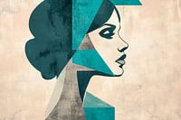 Over ‘Geometrisch portret van een vrouw in blauwe tinten’ van Poster Art Shop