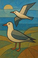 Geometrisch schilderij met zeemeeuwen. van Galerij Hoppenbrouwers