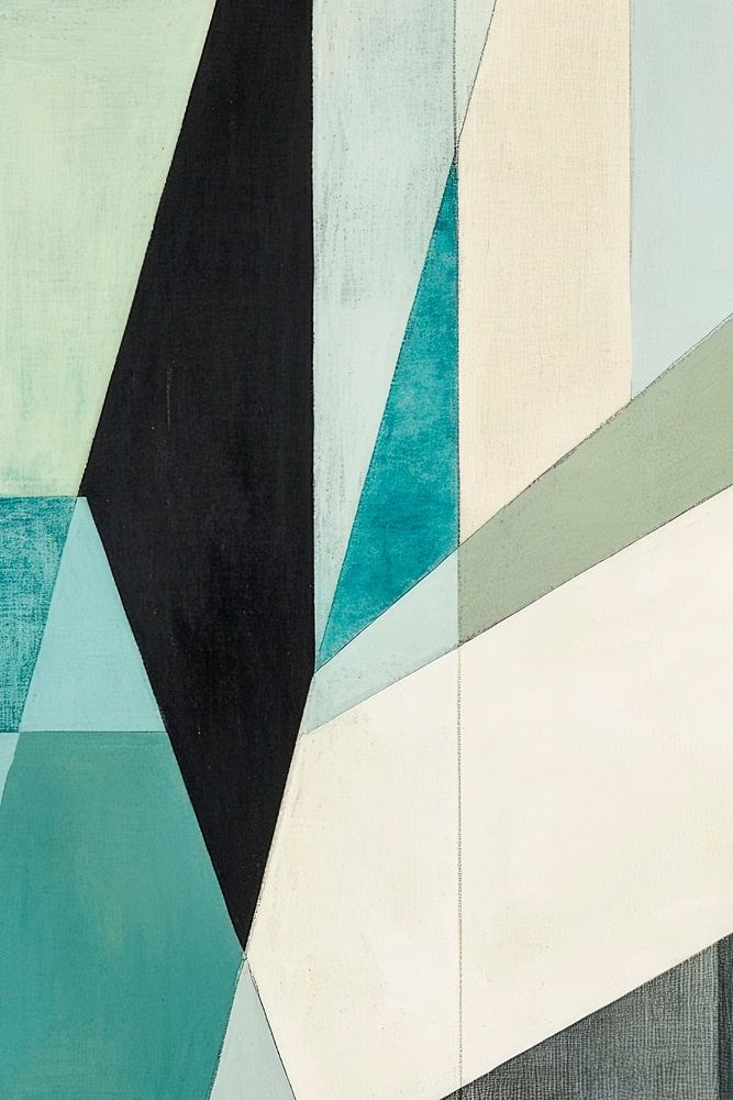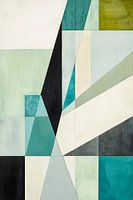 Zachte geometrie ontvouwt zich in harmonieuze groene en blauwe tinten, terwijl heldere lijnen en vloeiende vormen een gevoel van rust uitstralen. Deze moderne compositie past perfect in een stijlvolle woonkamer, waar het een uitnodigende, ontspannen sfeer creëert die zowel creativiteit als sereniteit aanmoedigt. Ideaal voor een vredig…