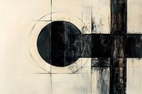 Een krachtig samenspel van geometrische vormen ontvouwt zich in krachtige zwart- en grijstinten, afgewisseld met een helderwitte achtergrond. De harmonieuze balans tussen cirkels en lijnen creëert een aantrekkelijke dynamiek. Ideaal voor de woonkamer, het geeft de kamer een moderne, artistieke touch en nodigt uit tot discussie.