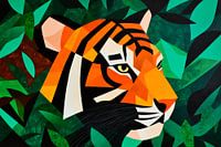 De krachtige blik van een tijger breekt door het dichte groen van de bladeren, terwijl levendige kleuren en geometrische vormen een moderne, artistieke sfeer creëren. Deze energieke compositie brengt leven en passie in elke woonkamer en trekt ieders aandacht. Perfect voor natuurliefhebbers en creatieve zielen!