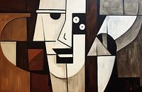Geometrische Figuren | Kubistisch Portret - Dit intrigerende canvas presenteert een kubistische compositie met een abstracte interpretatie van portretten, waarbij monochrome tinten slim afsteken tegen warme, aardse kleuren. De geometrische segmentatie en de afwisseling van bruin, zwart, wit en hints van beige dragen bij aan een gestructureerde, doch speelse dynamiek.
