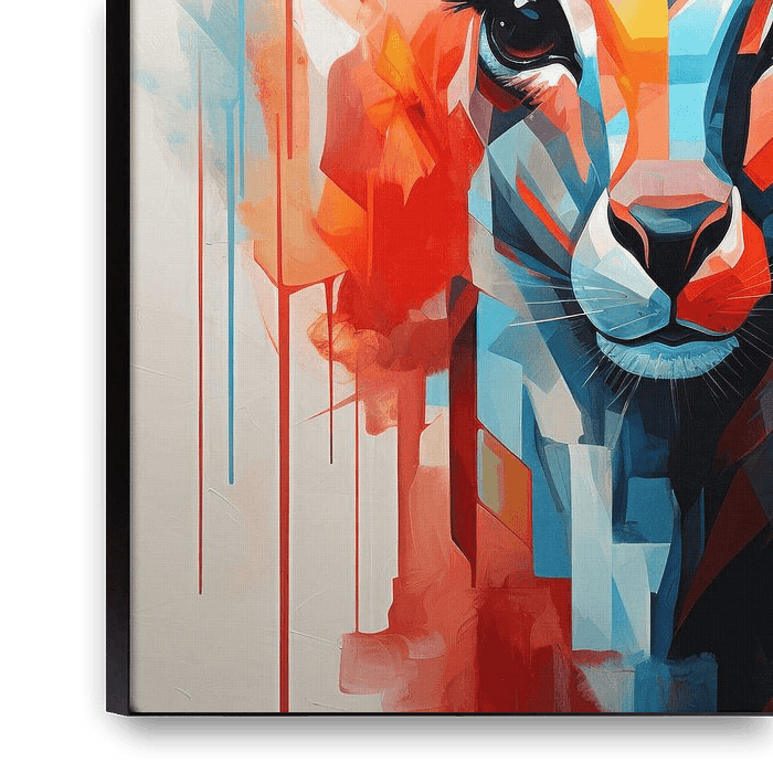 "Geometrische Gratie" is een modern kunstwerk dat een antilope portretteert door middel van scherpe geometrische vormen en een levendig kleurenpalet. De compositie van het stuk gebruikt een versmelting van warme en koele tinten, wat zorgt voor een dynamisch en bijna futuristisch aanzicht. De abstracte stijl en de gestroomlijnde vormen…