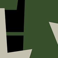 Dit moderne abstracte kunstwerk heeft gedurfde en grafische zwarte, witte en groene vormen, geïnspireerd door de architectuur uit het midden van de eeuw en de Bauhaus-beweging. Met een knipoog naar retro industriële woonstijlen, belichaamt dit stuk eenvoud en minimalisme door het gebruik van moderne vormen en lijnen. De strakke geometrie en sterke graphics maken dit stuk een perfecte toevoeging aan elke ruimte die op zoek is naar een vleugje moderne verfijning.