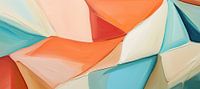 Geometrische Kleurspel | Abstracte Kunst - Dit abstracte schilderij speelt met geometrische vormen, wat zorgt voor een dynamisch beeld. De zachtheid van de penseelstreken, gecombineerd met een fris kleurenpalet van voornamelijk warme tinten, zoals oranje en beige, en accenten van koel blauw en groen, geeft het een evenwichtige…