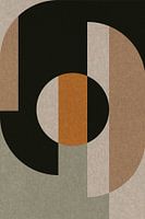 Dit moderne abstracte kunstwerk heeft basisvormen en strakke lijnen in een retro-geïnspireerde stijl. Het kleurenpalet van groen, bruin, beige, geel en zwart creëert een eigentijdse woonstijl, perfect voor elke kamer. Het minimalistische ontwerp bevat elementen van abstract expressionisme en architectuur om een uniek stuk muurkunst te creëren.