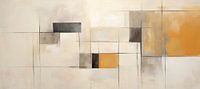 Geometrische Sereniteit | Abstract Aardetinten - Het schilderij presenteert een spel van geometrische vormen in een uitgebalanceerd palet van neutrale tinten en warme aardekleuren. Het is een abstract werk dat rust en eenvoud uitstraalt door een harmonieuze compositie van vierkanten en rechthoeken, afgewisseld met subtiele textuurdetails.