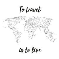 Geometrische Wereldkaart met Quote 'To travel is to live' in Zwart op Wit.