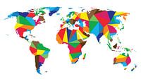 Een kleurrijke wereldkaart waarbij gebruik is gemaakt van krachtige en heldere kleuren.
