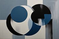 Geometrische abstractie in zwart, wit en blauw van Art & Soul Creations