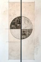 Een harmonieus samenspel van geometrische vormen combineert cirkelvormige elegantie met heldere lijnen en contrastrijke oppervlakken. De zachte aardetinten en het minimalistische ontwerp geven elke kamer een modern tintje. Ideaal voor een stijlvolle woonkamer of een creatief kantoor waar inspiratie en rust samen kunnen vloeien.