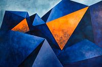 Een harmonieuze fusie van koele blauwtinten en helder oranje ontvouwt zich in dynamische, geometrische vormen die doen denken aan majestueuze berglandschappen. Deze krachtige compositie brengt leven en energie in elke woonkamer en geeft de ruimte een modern, creatief tintje. Ideaal om gesprekken te inspireren en de sfeer te verlevendigen.