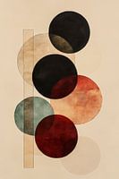 Levendige kleuren en harmonieuze cirkels dansen over zachte achtergrondtinten, terwijl de sierlijke verticale lijn voor een extra accent zorgt. Dit stijlvolle kunstwerk nodigt uit tot contemplatie en inspireert tot creativiteit. Perfect voor een modern kantoor of een stijlvolle woonkamer, het brengt zowel rust als energie in elke kamer.