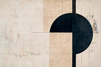 Een harmonieuze dialoog tussen geometrische vormen ontvouwt zich in zachte beige tinten en diep zwart. De grote cirkel straalt rust uit, terwijl de heldere lijnen van de compositie helderheid uitstralen. Dit kunstwerk, ideaal voor een moderne woonkamer, is een aantrekkelijke blikvanger en nodigt uit om te blijven hangen.